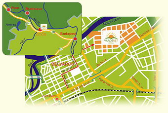 Térképvázlatok: a Városét elhelyezkedése, megközelítése